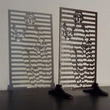 These artworks are delivered ready to use as stand-alone sculptures with home-made stands. A homemade spacer and screw makes it ready to hang on a wall. Or hang it on windows or tiles with a specialised suction cup with screw.