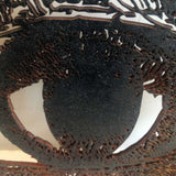 Wood: Handpainted with a transparent, dark varnish to keep the details in the wood remain visible.