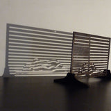 These artworks are delivered ready to use as stand-alone sculptures with home-made stands. A homemade spacer and screw makes it ready to hang on a wall. Or hang it on windows or tiles with a specialised suction cup with screw.