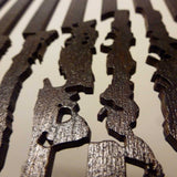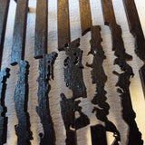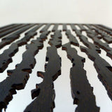 Metal: Handpainted with a specialised primer and two coats of black paint.